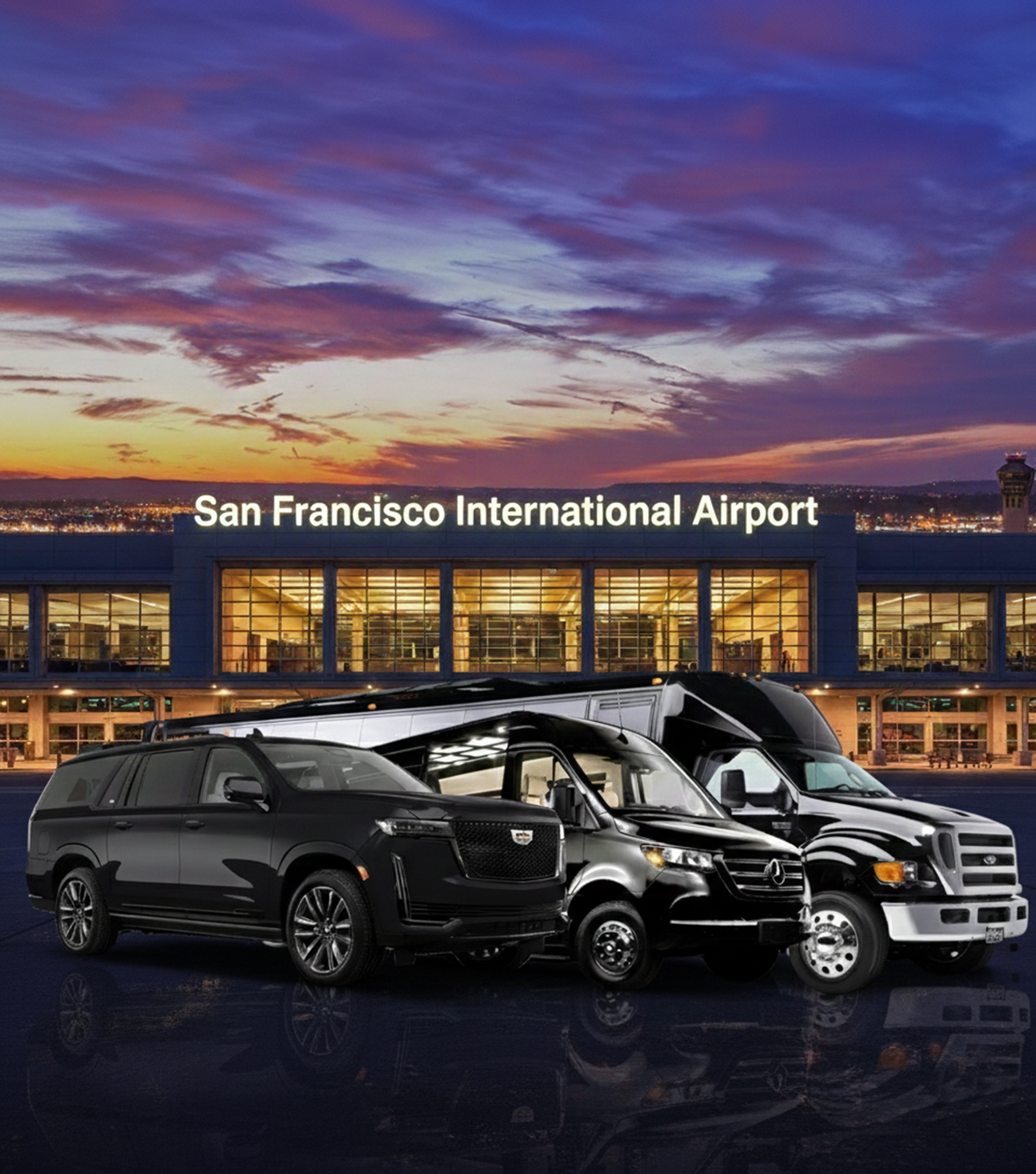 Experience premium transportation to and from San Francisco International Airport with SF Black Car Luxury. Our professional chauffeurs provide punctual, comfortable, and stylish rides for business travelers, tourists, and special events. With a fleet of luxury sedans, SUVs, Sprinter vans, and limousines, we accommodate any group size and travel need. Our team handles luggage, traffic, and navigation so you can enjoy a stress-free journey every time.